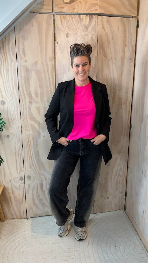 Basis Travel T Shirt van Azzurro in de kleur neon roze