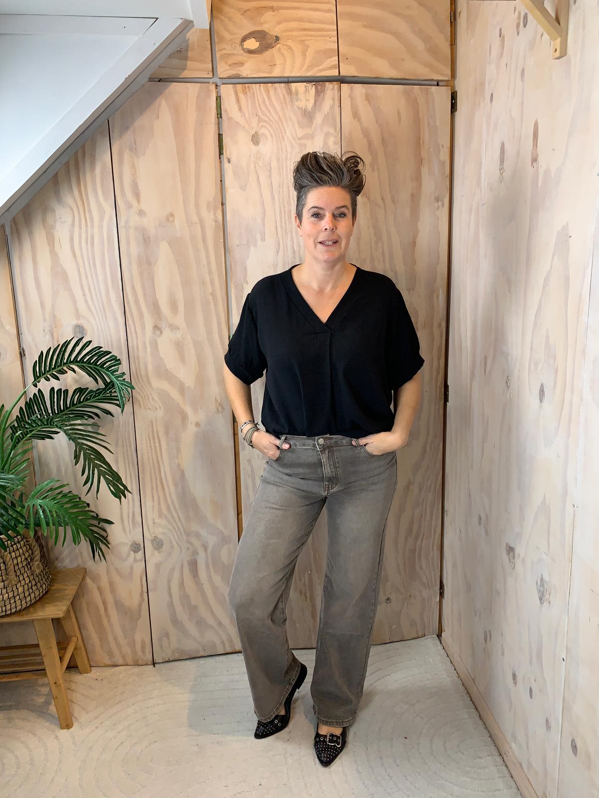 Basis blouse Tess met V-Hals en elastiek aan de onderkant