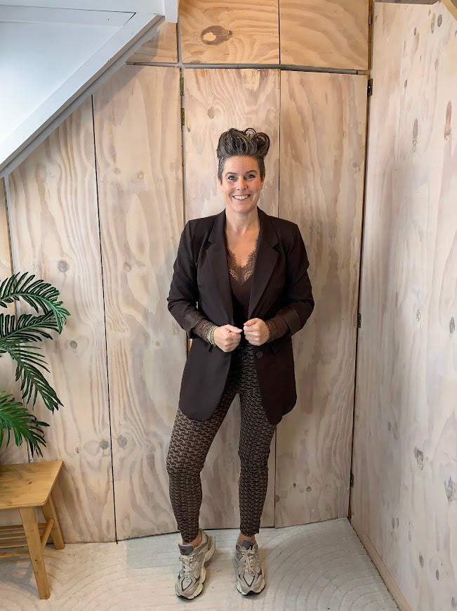 Deze mooi travelbroek van ambika met print in het bruin smalle pijp met spiltje