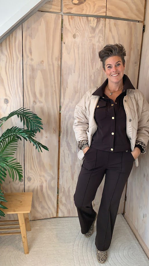 Ontdek het reversible jasje dat je garderobe direct veelzijdiger maakt. Aan de ene kant stijlvol beige, perfect voor een klassieke, ingetogen look. Aan de andere kant een elegante panterprint in warme bruine tinten, voor een gedurfde, trendy uitstraling. Twee stijlen in één jasje — klaar om jouw look elke dag opnieuw te transformeren.