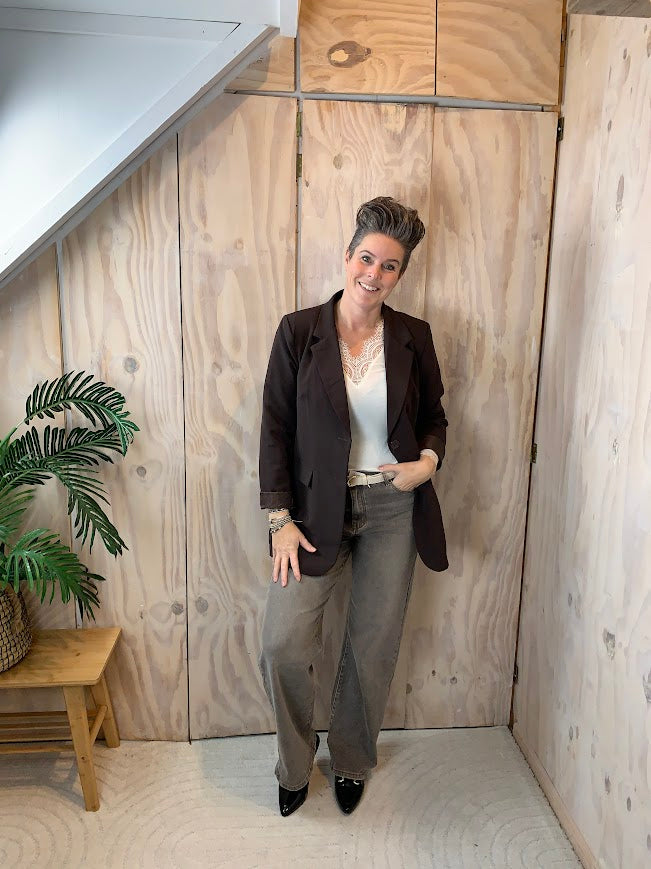 Deze jeans met rechte pijpen is zo'n broek die je elke dag uit de kast pakt. Het model heeft een prachtige bruine was die meteen een chique, warme uitstraling geeft. Perfect voor zowel een casual look met sneakers als een stijlvolle outfit met hakken.