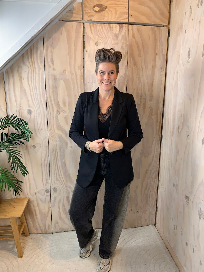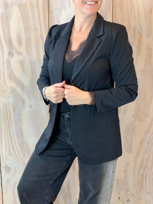 Mooi getailleerde blazer van jogging beweegt natuurlijk mee.