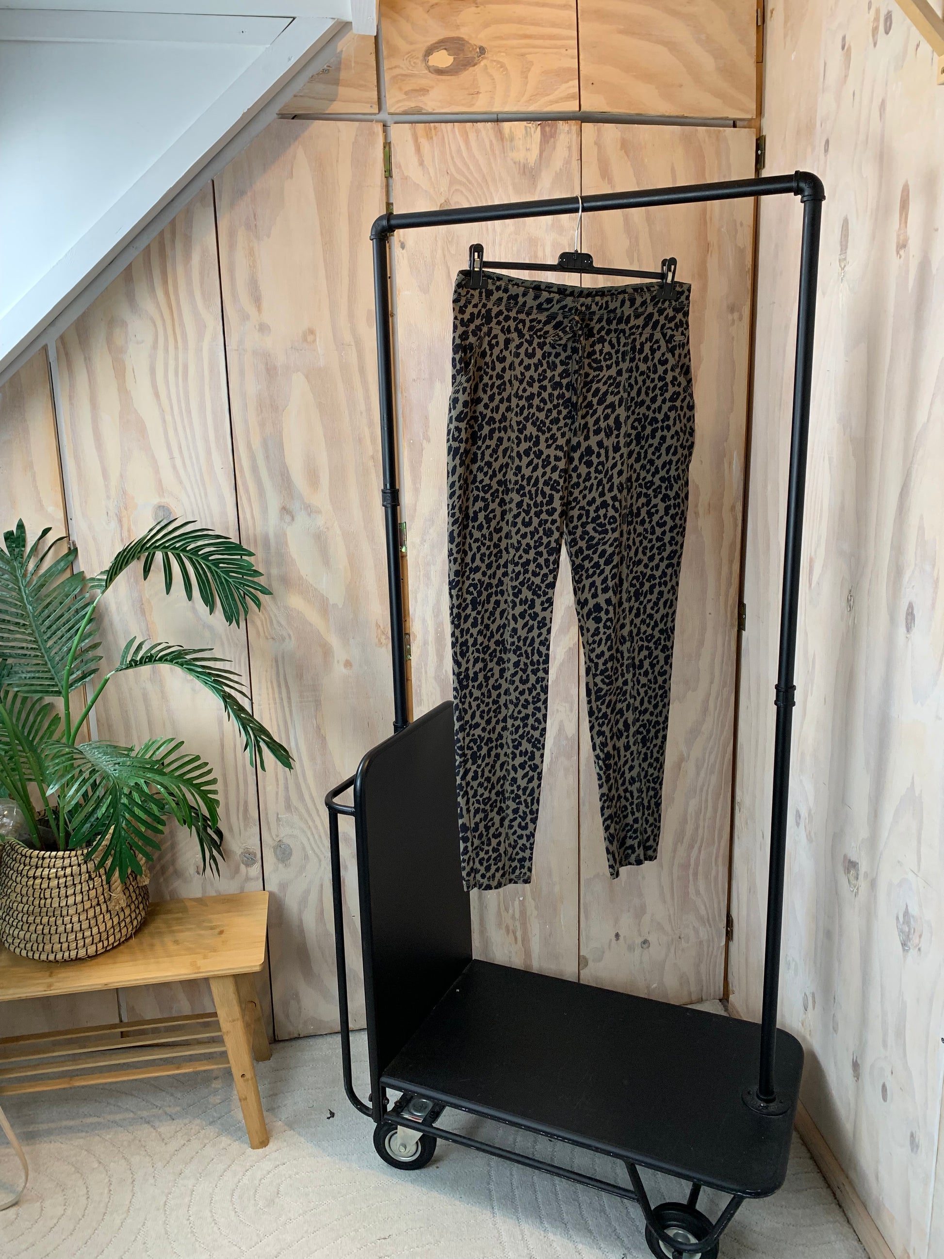 Travel broek smalle pijp in een mooie panterprint in de kleuren zwart groen