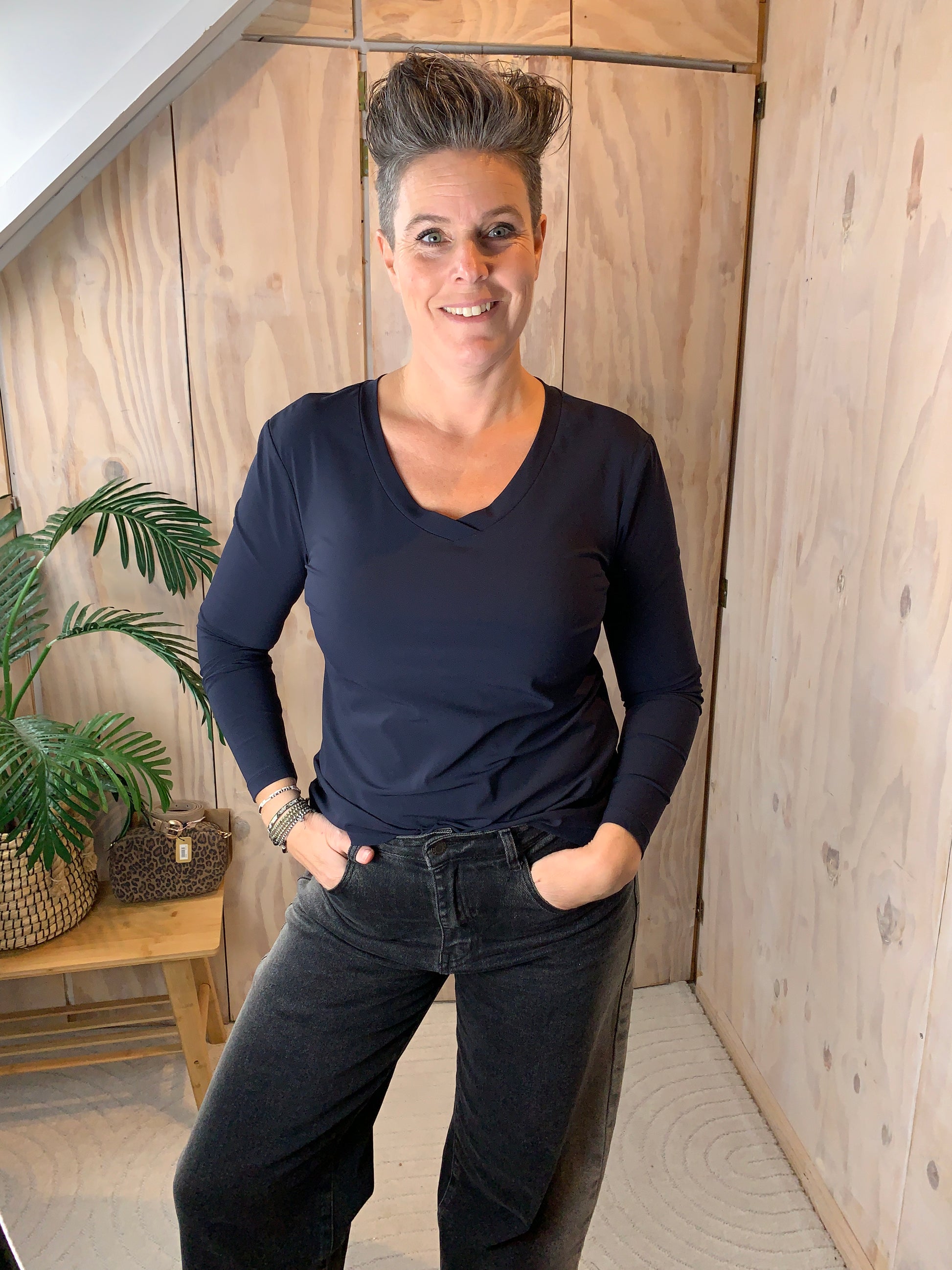 Mi PIACE donkerblauw basis shirt lange mouwe van dikke travelstof