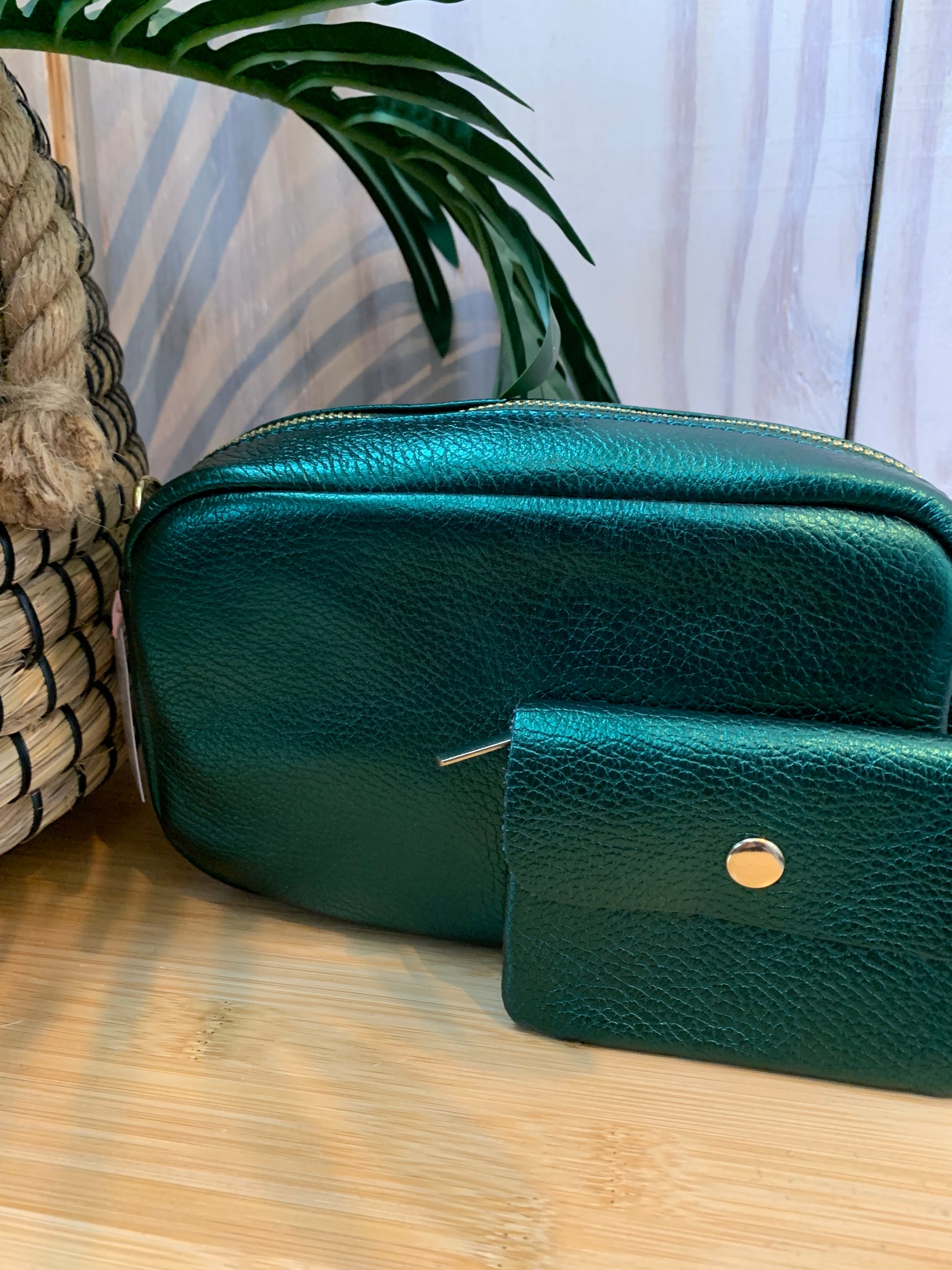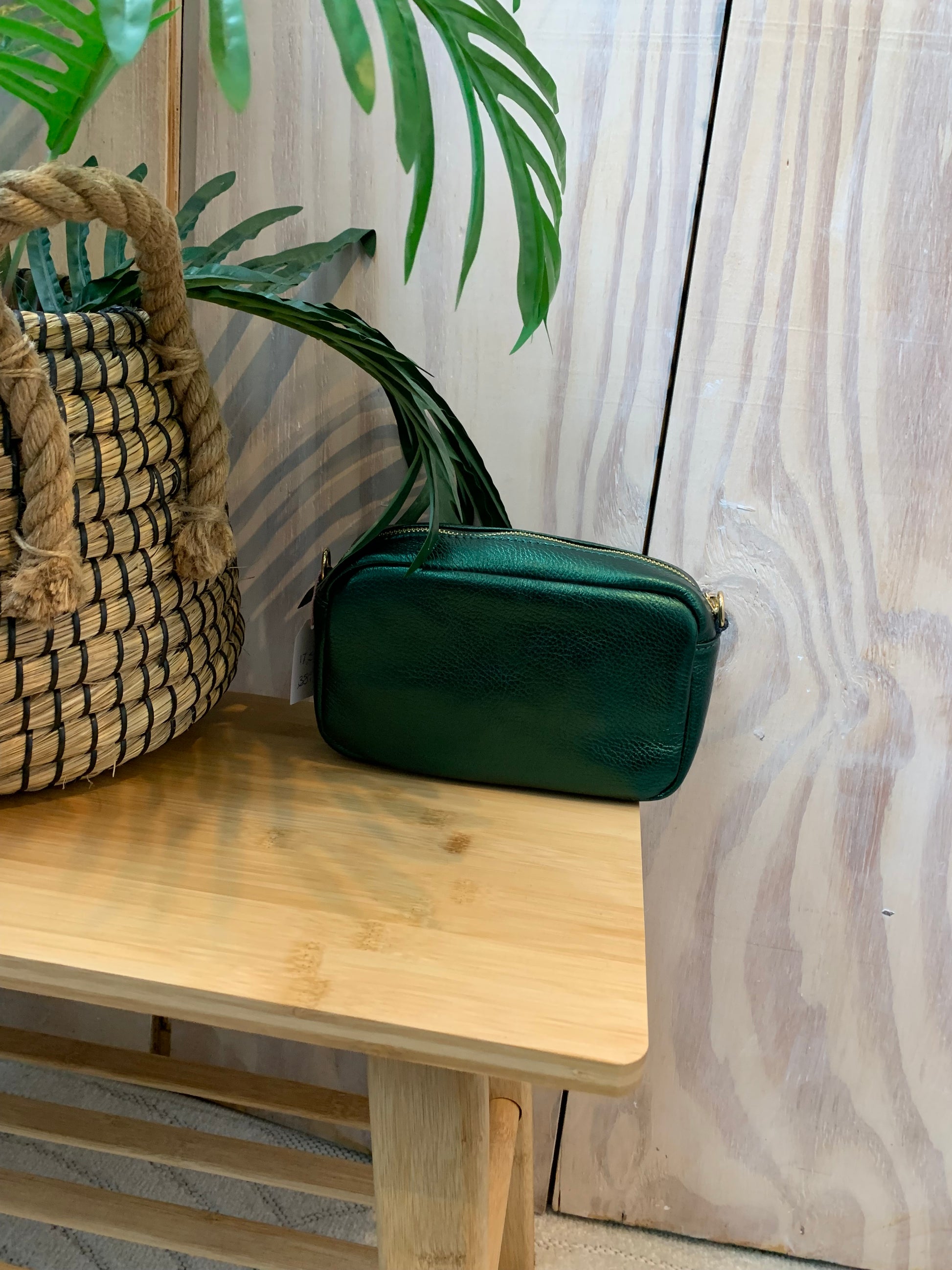 Dit is een z’n fijn tasje niet te groot en niet te klein ideaal dus tas is van 100% leer in de kleur matalic groen