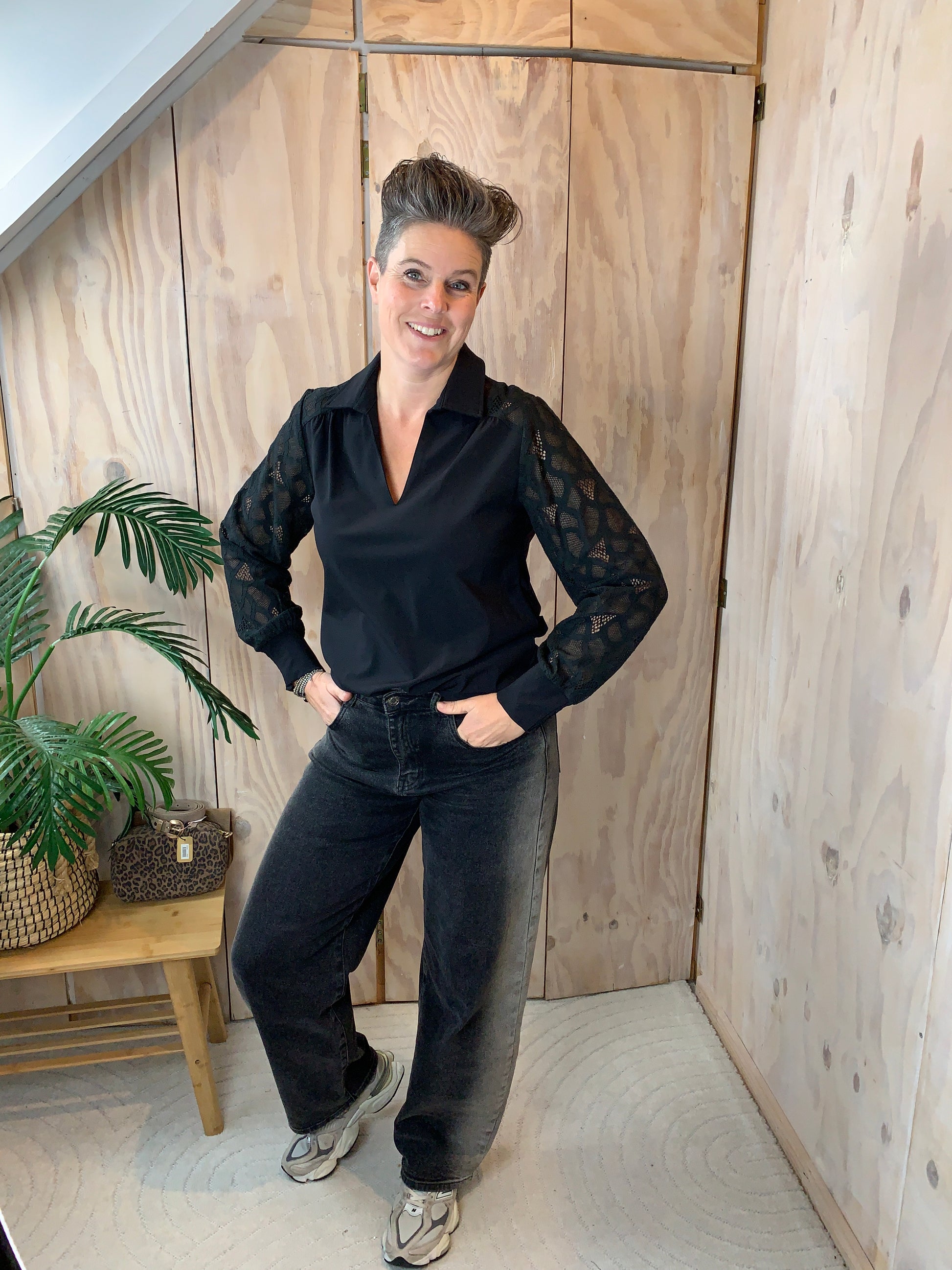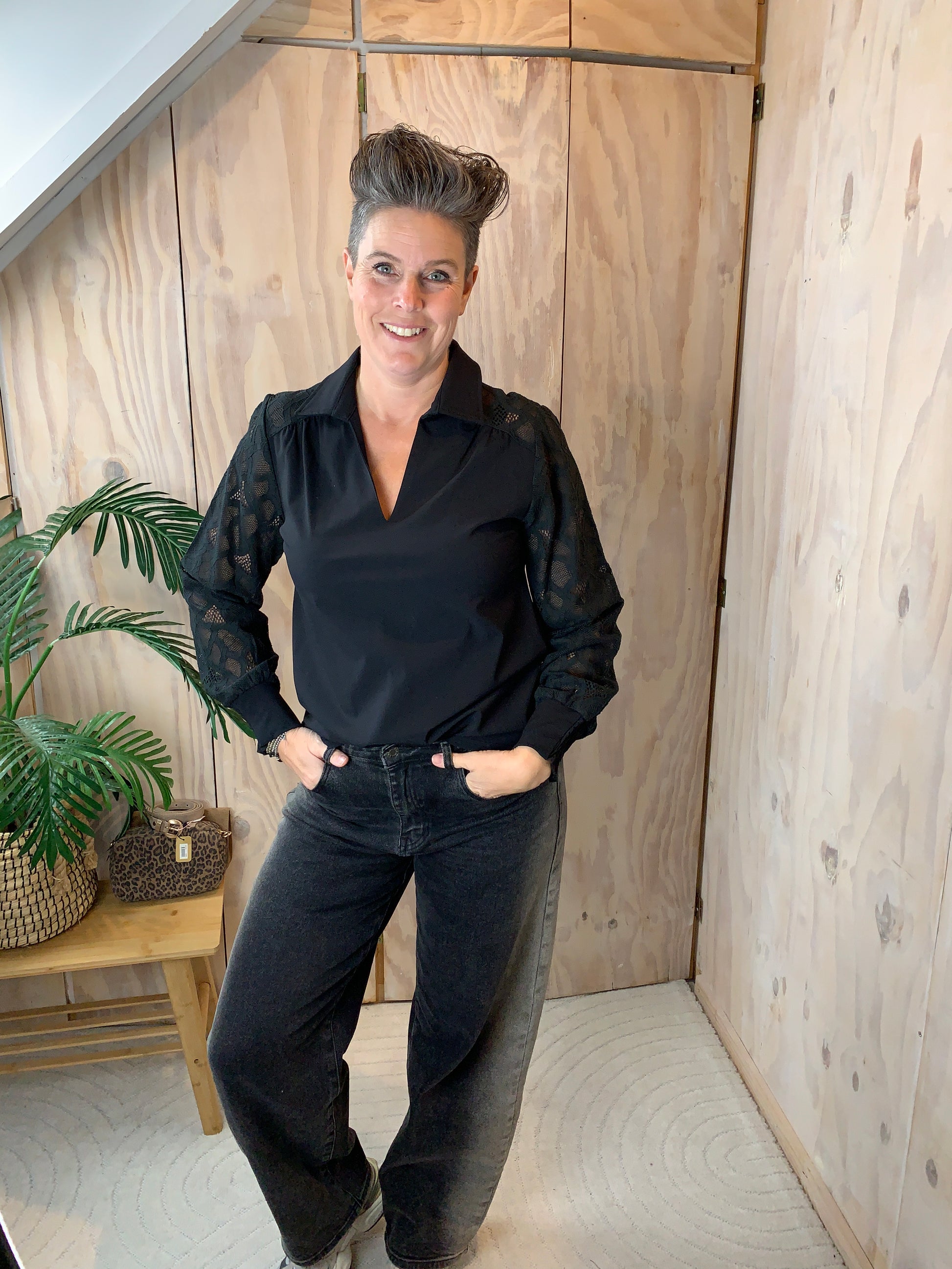Mooie travelblouse met kanten mouwen