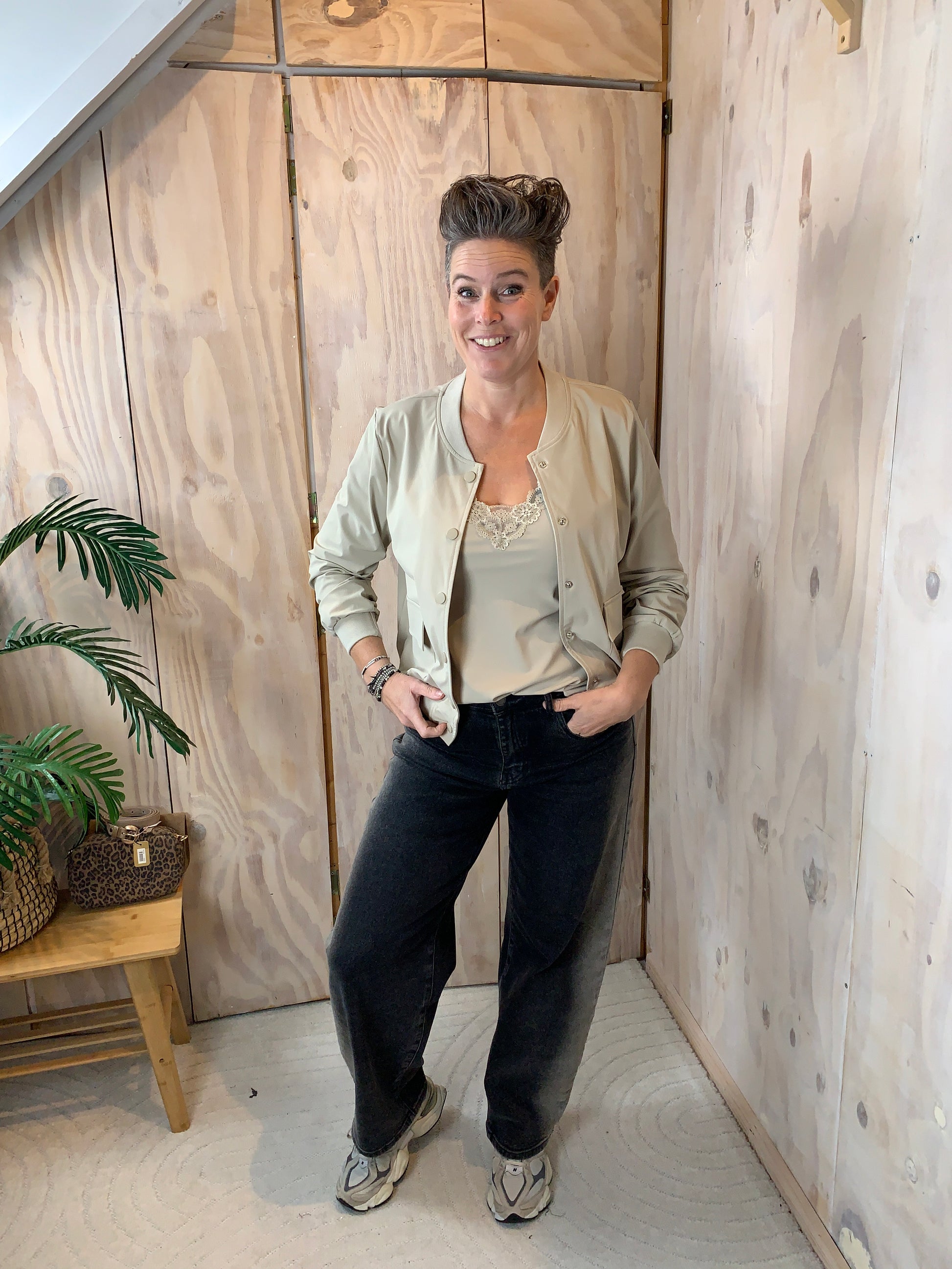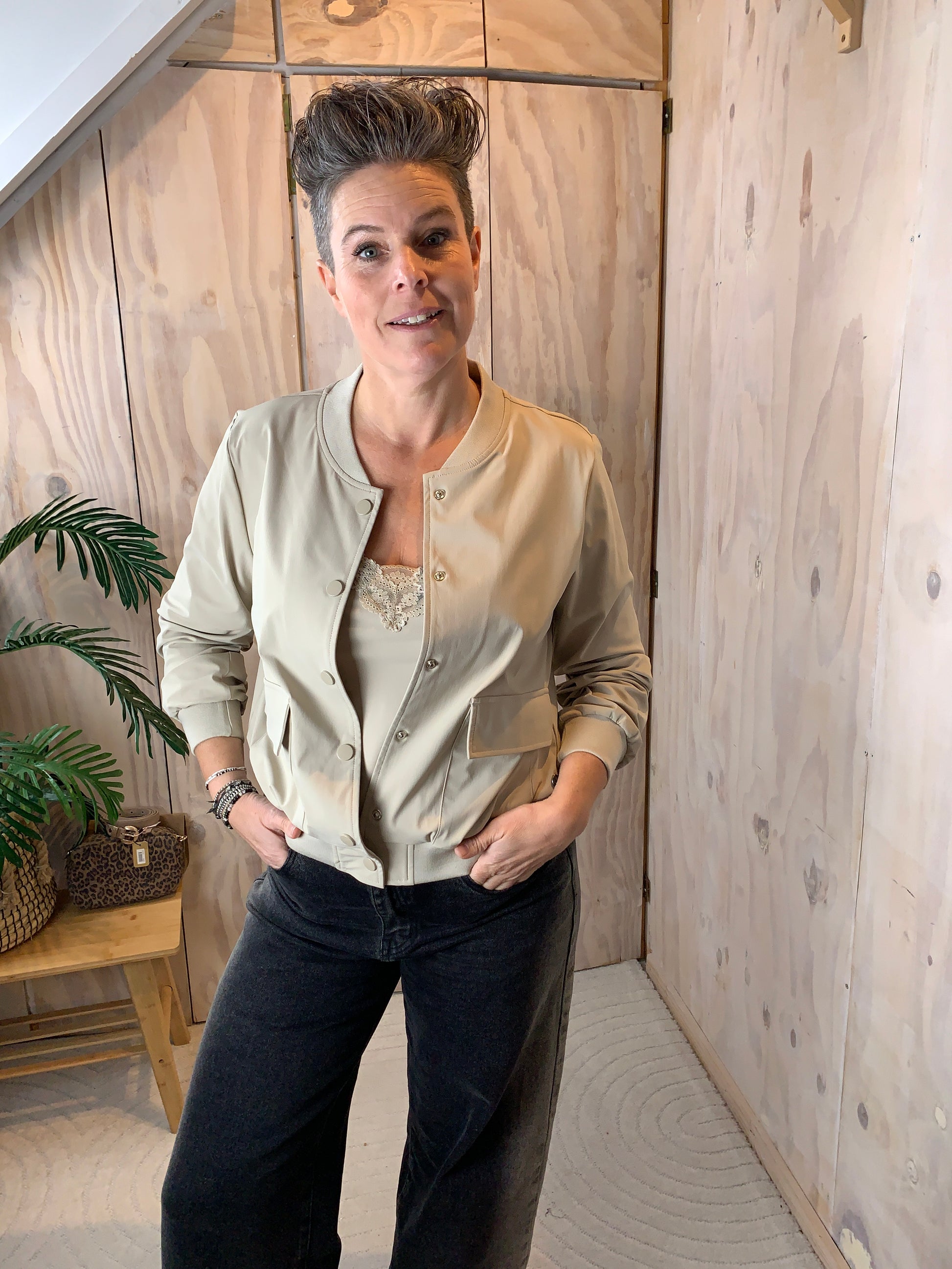 Van het fijne travelstof deze heerlijke bomber in de mooie kleur beige
