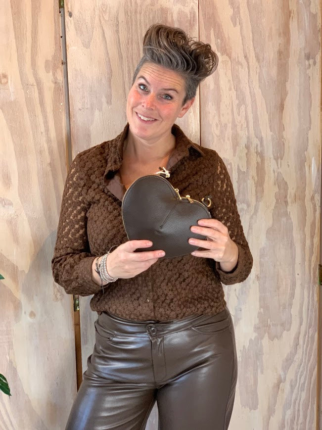 Lamour is een superleuke hartvormige handtas vervaardigd van 100% grain leer en is een echte eyecatcher. Inclusief een afneembaar en verstelbaar hengsel, zodat de tas ook als crossbodytas gedragen kan worden. Deze must-have wil je niet missen!