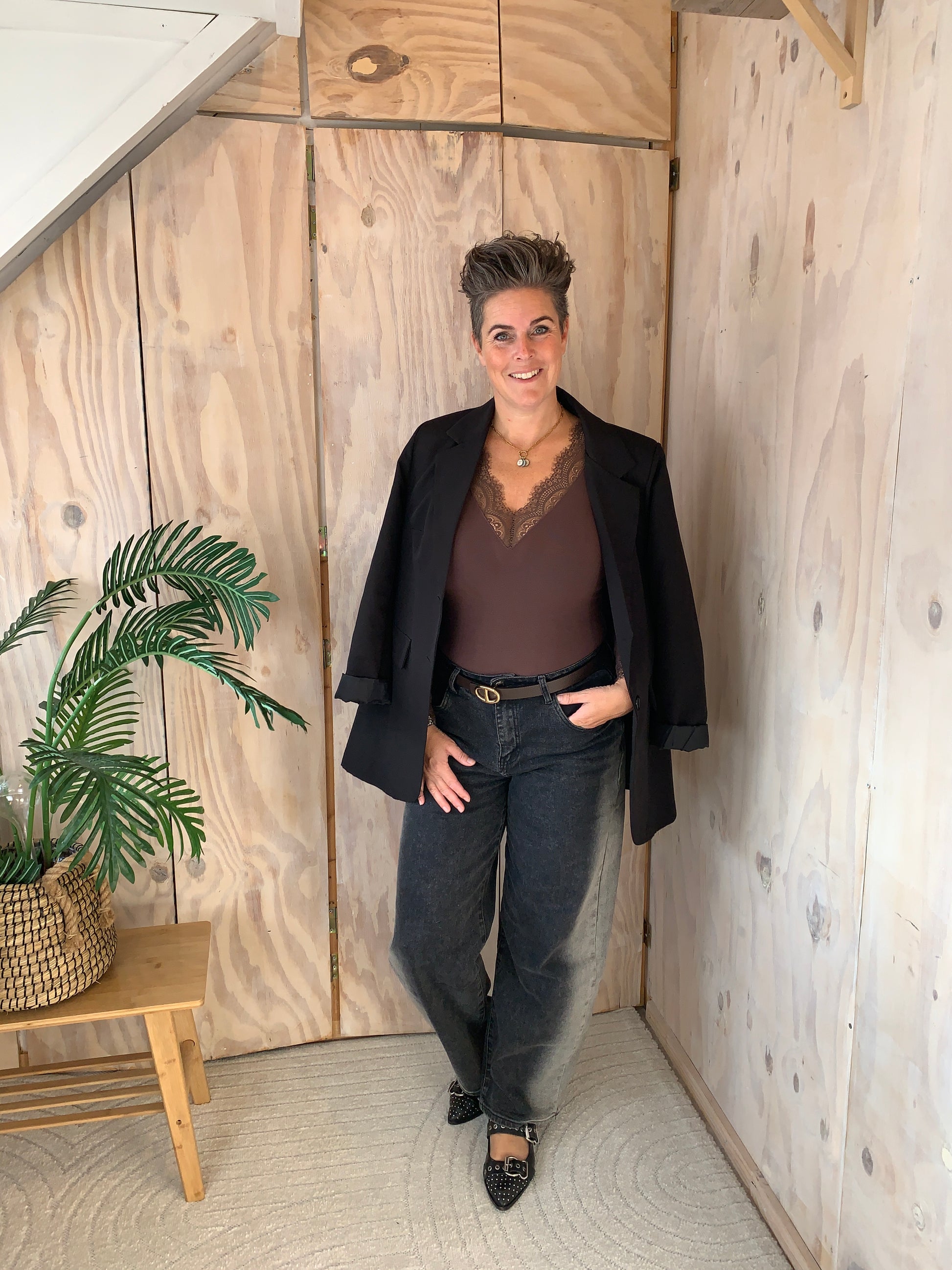 Deze prachtige top van Triple Nine combineert elegantie met ultiem draagcomfort. De stof is superzacht en dun, waardoor hij heerlijk aanvoelt op de huid en perfect is om te dragen onder truitjes, vestjes of blazers. De verfijnde kant langs de V-hals geeft een vrouwelijke en stijlvolle touch, terwijl de soepele pasvorm zorgt voor een mooi silhouet.