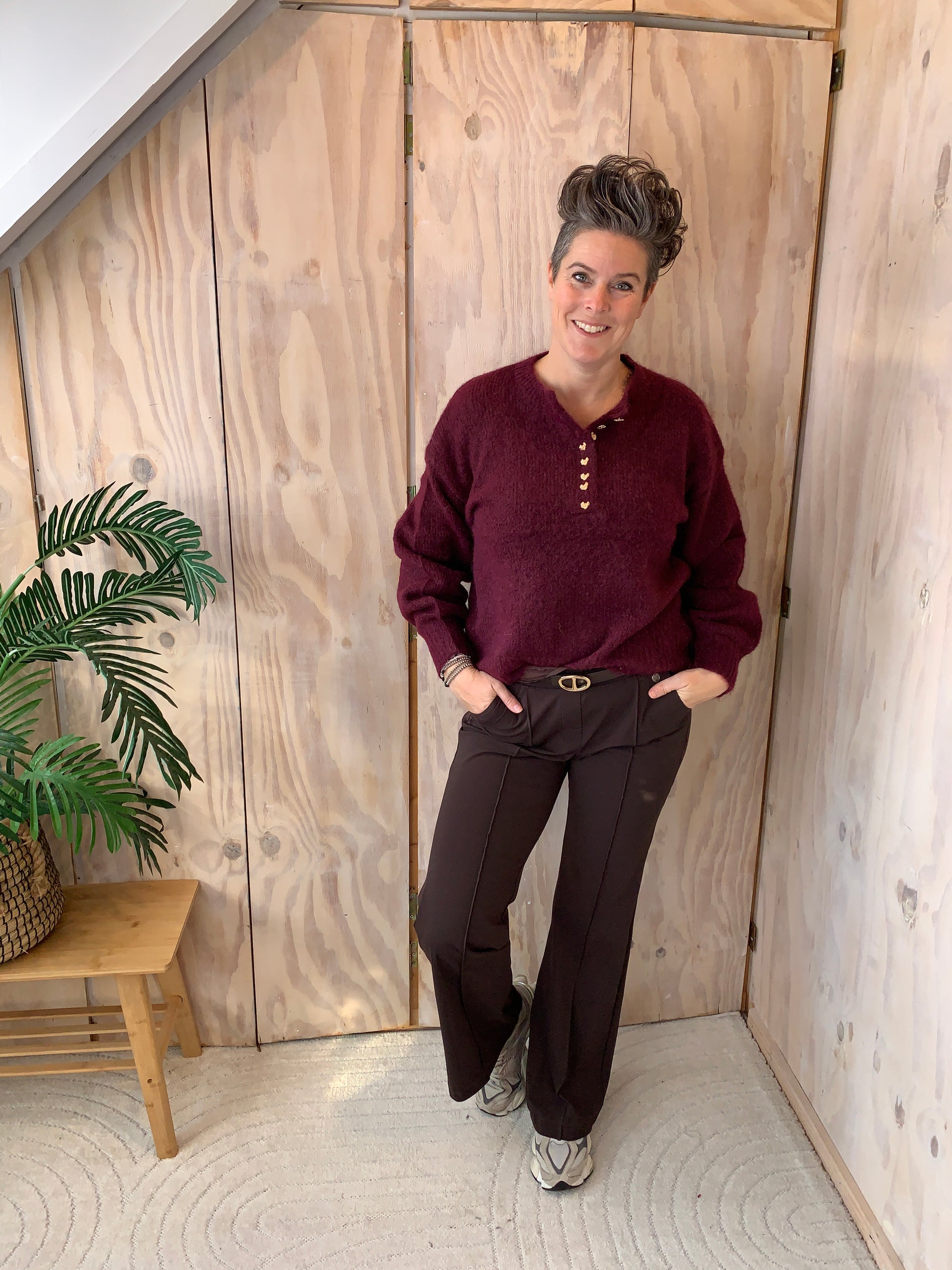De subtiele knoopdetails bij de hals geven deze trui een elegante, vrouwelijke uitstraling.