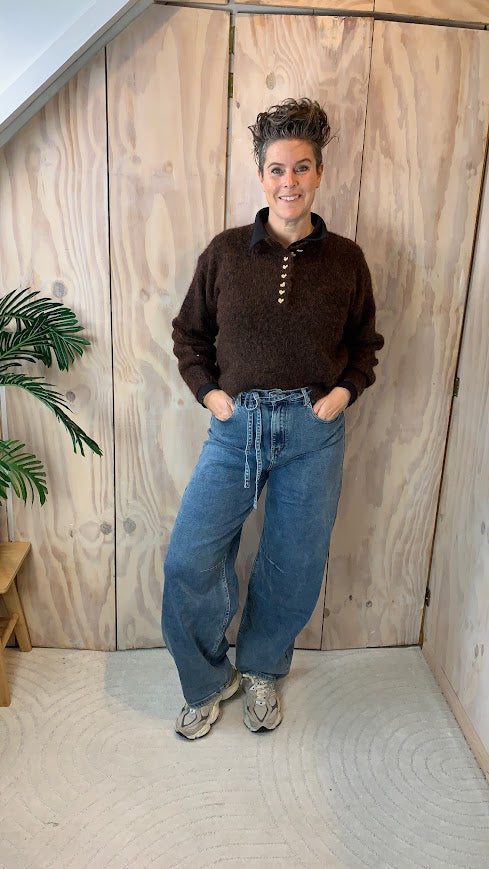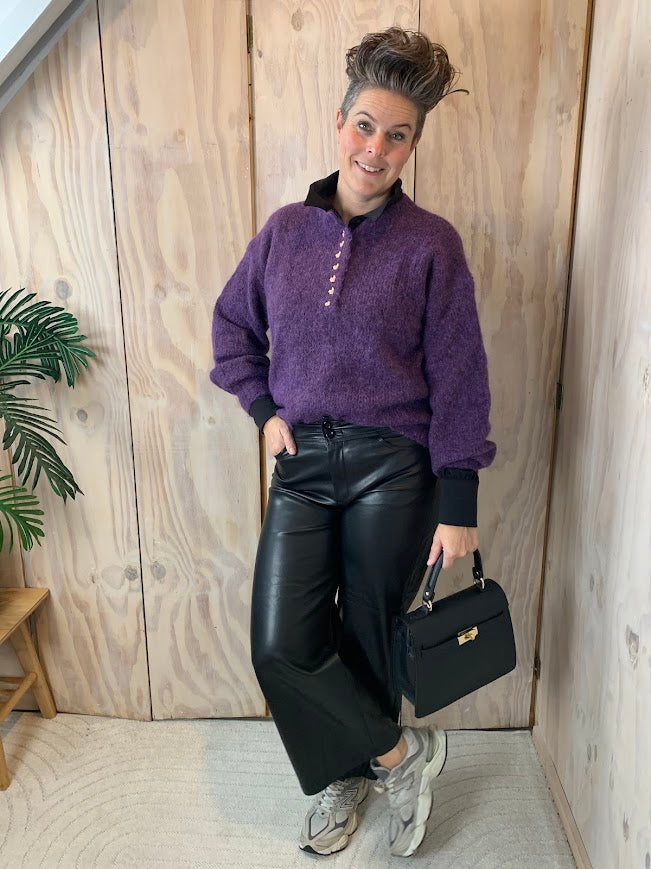 De zachte stof voelt comfortabel aan en valt soepel om het lichaam. Dankzij het tijdloze model is de trui makkelijk te combineren — draag hem met een leatherlook broek voor een stoere, chique uitstraling of met een jeans voor een casual maar verzorgde look.