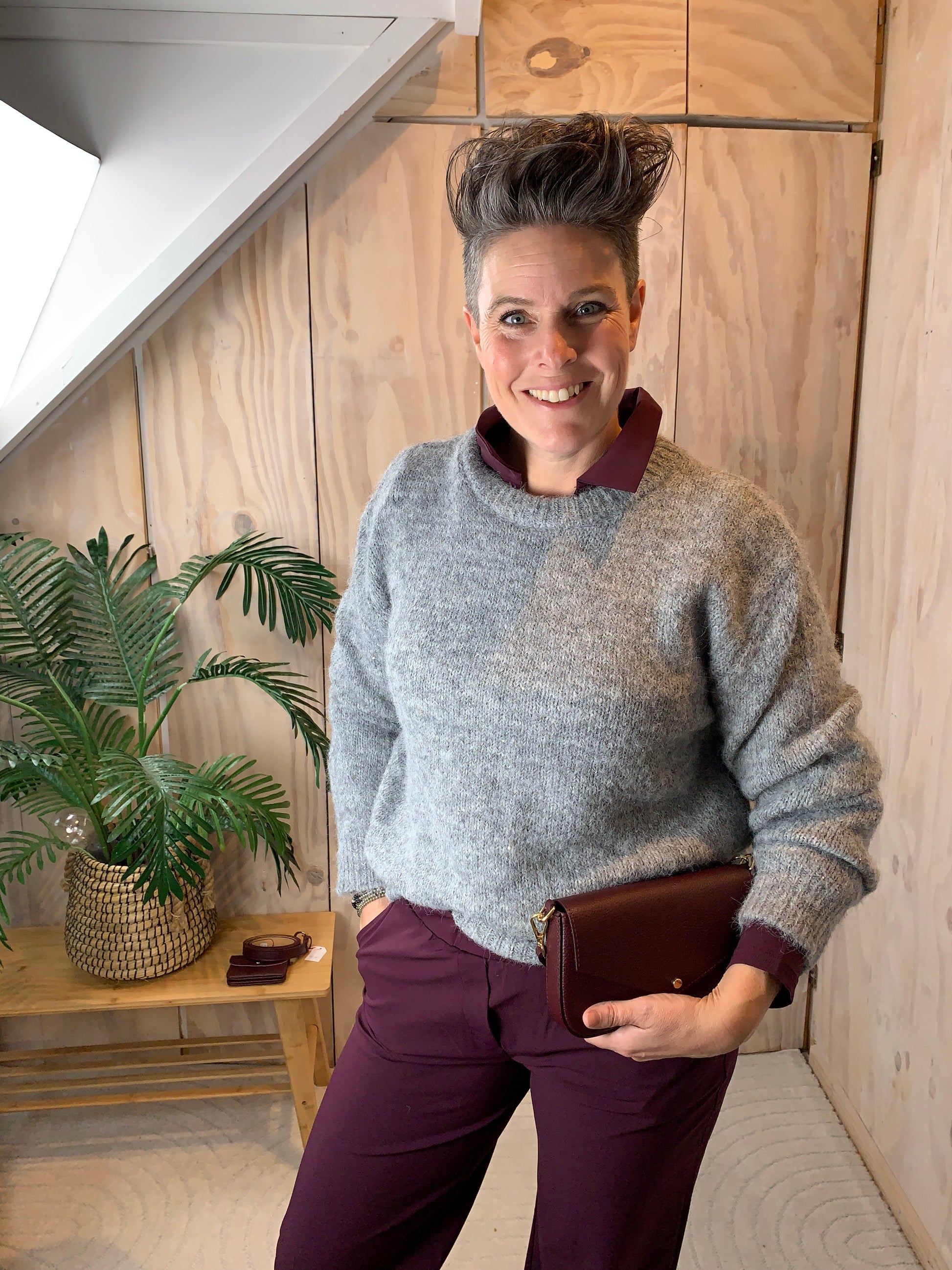 Deze trui is zo’n item dat je moeiteloos elke dag uit de kast pakt. De zachte breistructuur voelt heerlijk comfortabel aan en het subtiele glittertje geeft net dat vleugje luxe, zonder te overheersen. Perfect voor wie houdt van een rustige basis met een verfijnde twist.