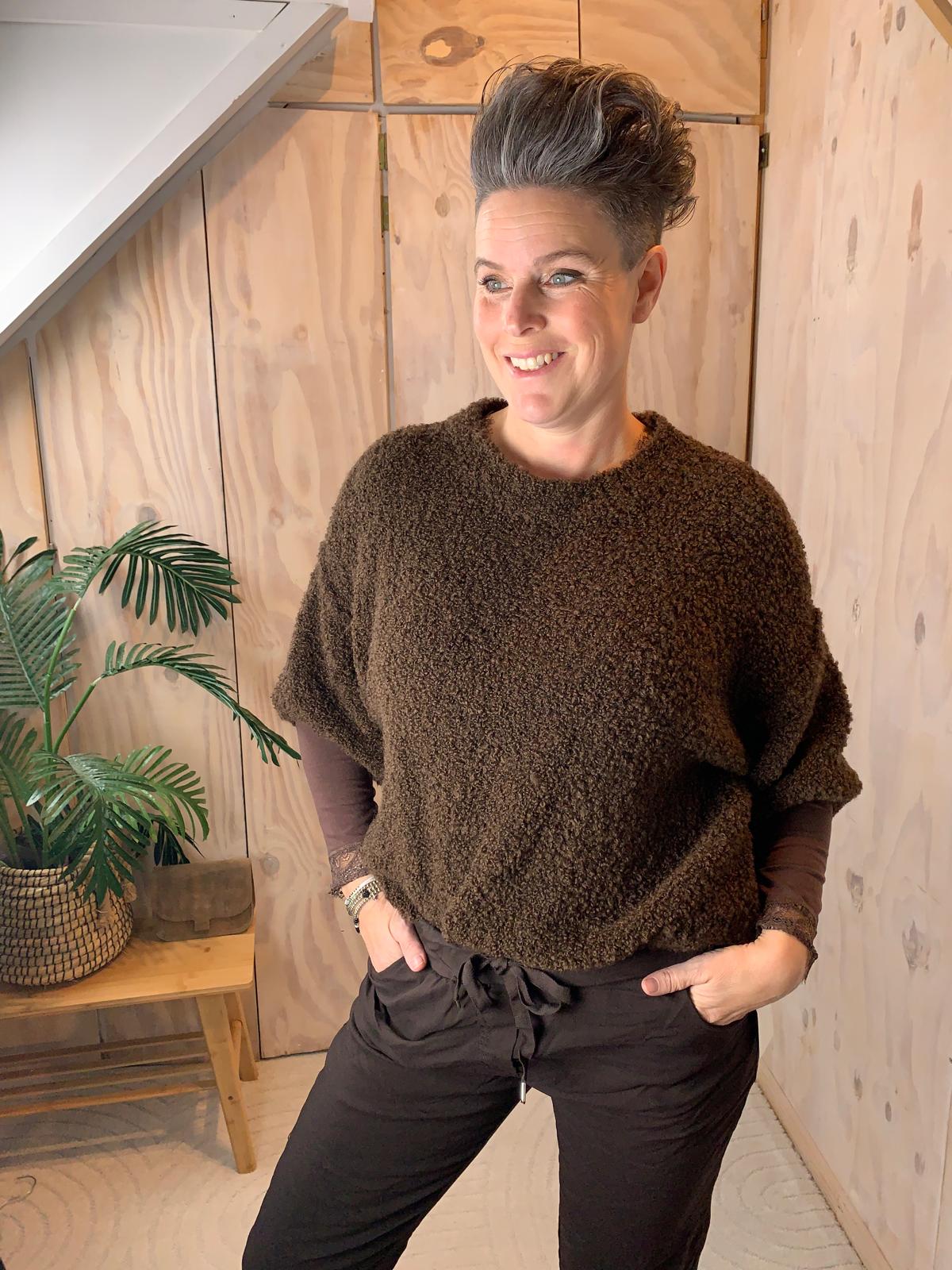 Dit truitje is een echte feel-good must-have. De stof heeft een zachte teddy-achtige structuur, waardoor hij heerlijk comfortabel draagt en meteen warmte en gezelligheid uitstraalt. De mooie boothals geeft het truitje een vrouwelijke en ontspannen uitstraling.