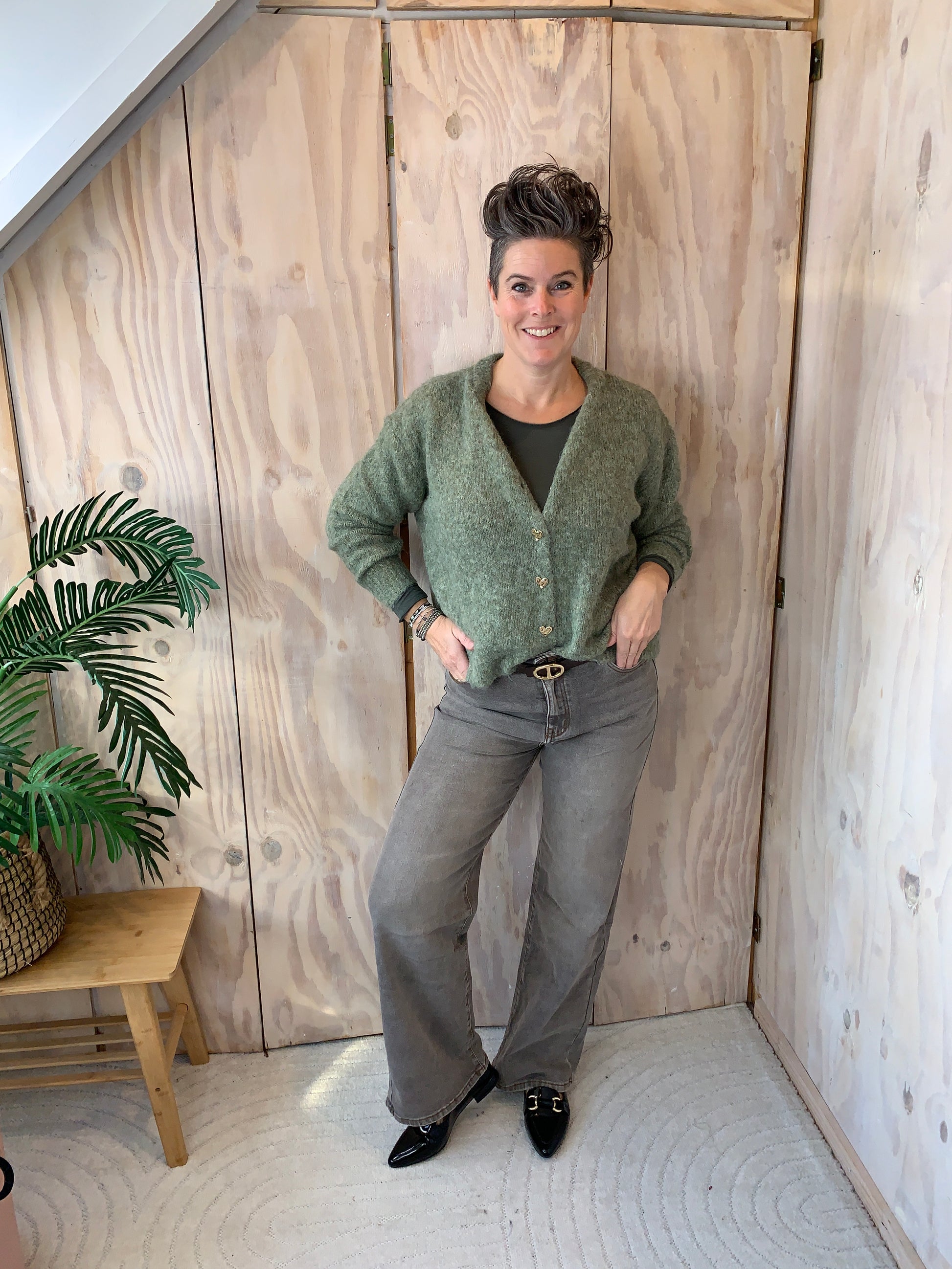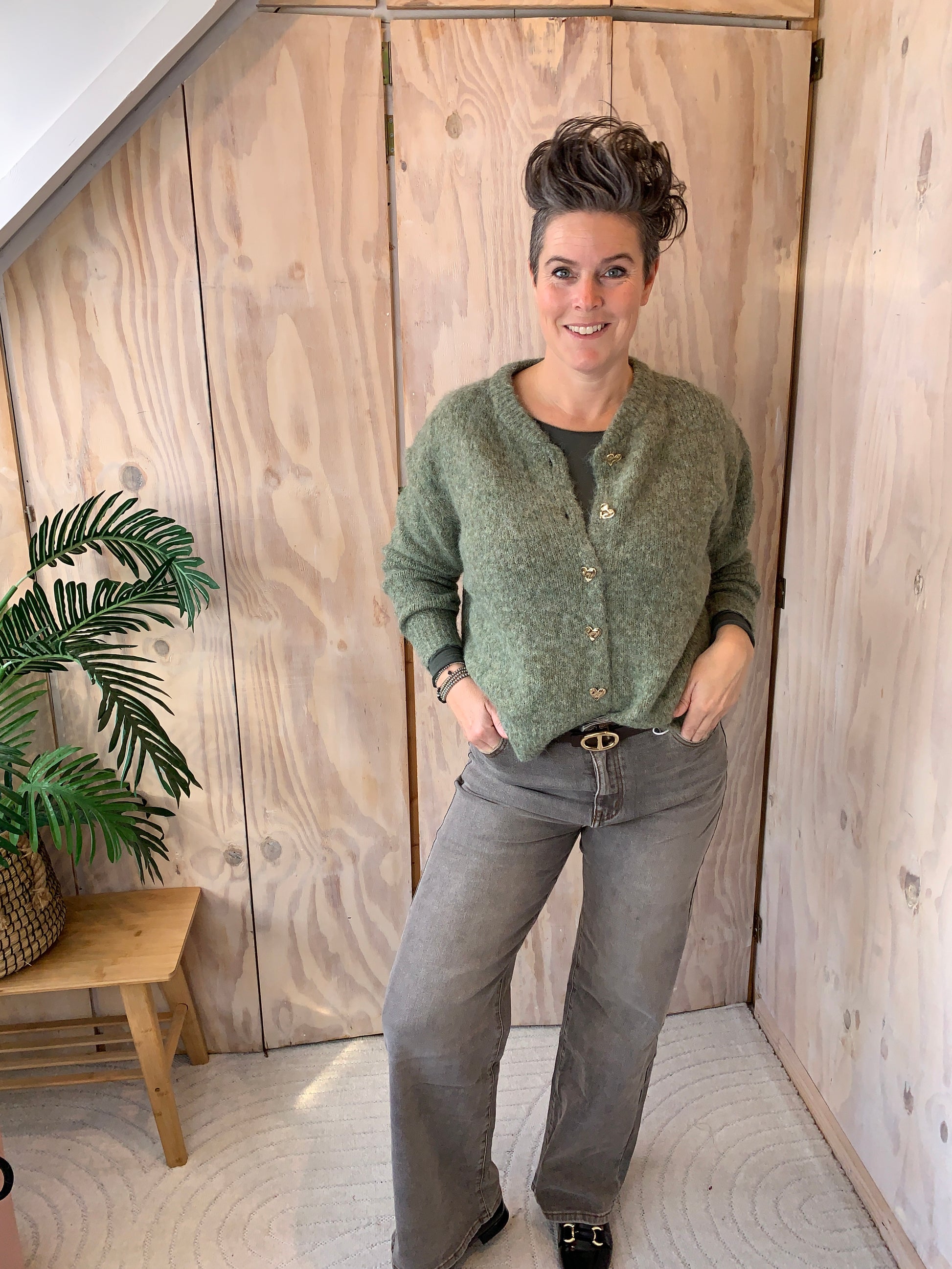 Dit groene vest is zo’n item dat je er één keer bij pakt… en daarna niet meer uitdoet. De kleur is zacht maar toch sprekend, waardoor hij super mooi combineert met jeans, een basic top of een jurkje. De gouden hartjesknopen geven nét dat lieve, vrouwelijke detail zonder dat het té wordt.